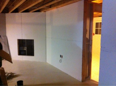 He started this past Monday and has gotten some fast progress done! Drywall is even being put up right now and it's looking awesome!